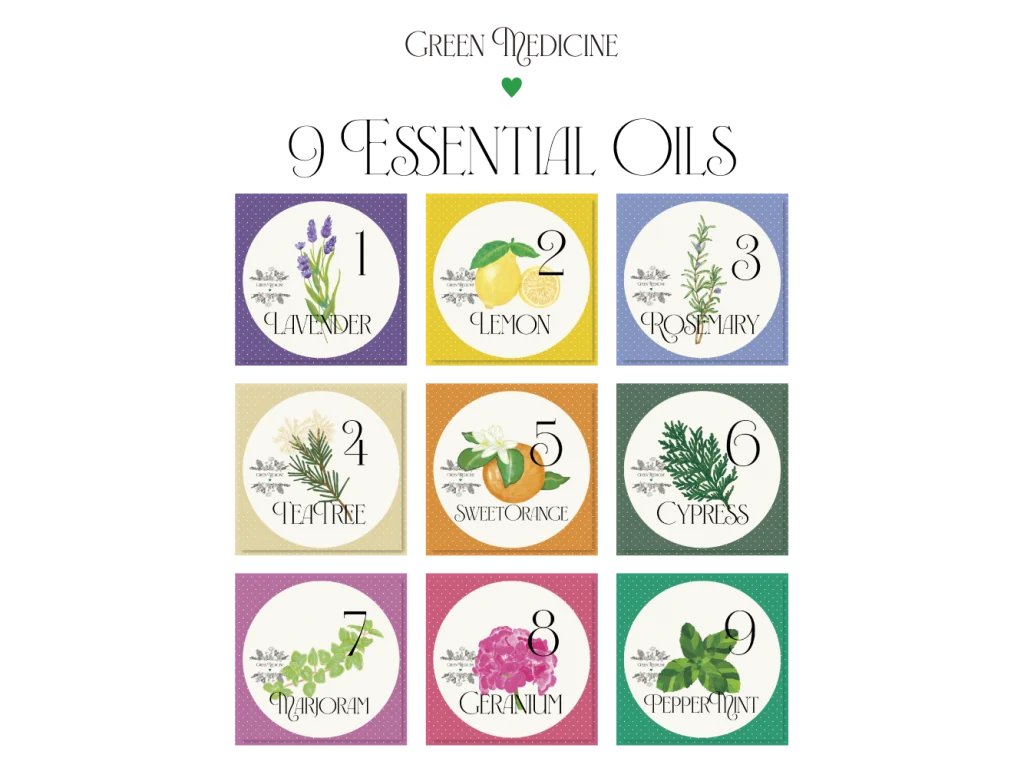 などなど、グリーン・メディスンが厳選した9種類の精油が、日々の生活の中で健康や美容をサポートいたします。