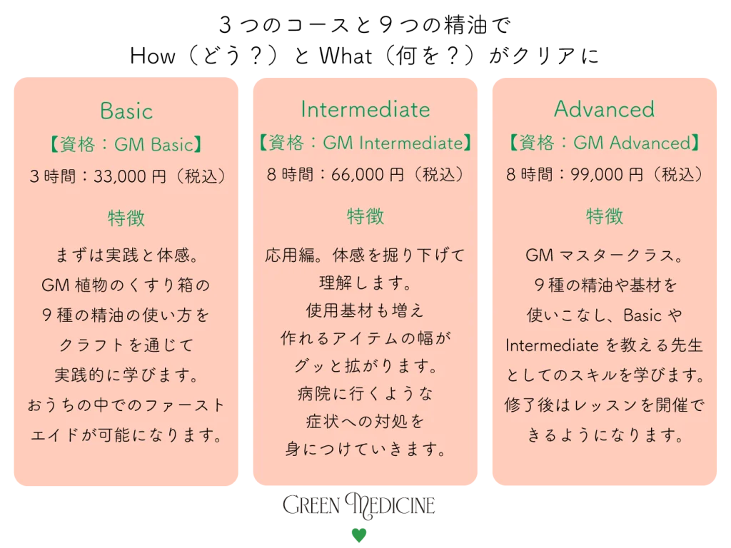 Green Medicineは、心身の健康と美しさを追求するための革新的なアロマテラピースクールおよびライフスタイルブランドです。 自社で直輸入している医療グレードの高品質なエッセンシャルオイルと、最新の皮膚科学に基づいた基材を使い、全く新しいアロマテラピーの実践をお伝えしています。